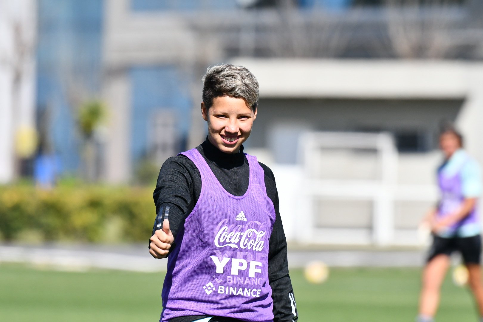 Christian Meloni dio comienzo a la segunda parte de la práctica con distintos circuitos de pases, buscando trabajar ambos perfiles. Luego, cada jugadora ocupó su posición en la cancha y participó de un ejercicio táctico con definición posterior. Tanto Meloni como Quiñones brindaron indicaciones para mejorar los movimientos y las intevenciones de cada futbolista. Más tarde, divididas en tres equipos, las albicelestes disputaron una competencia con foco en la presión y la definición.